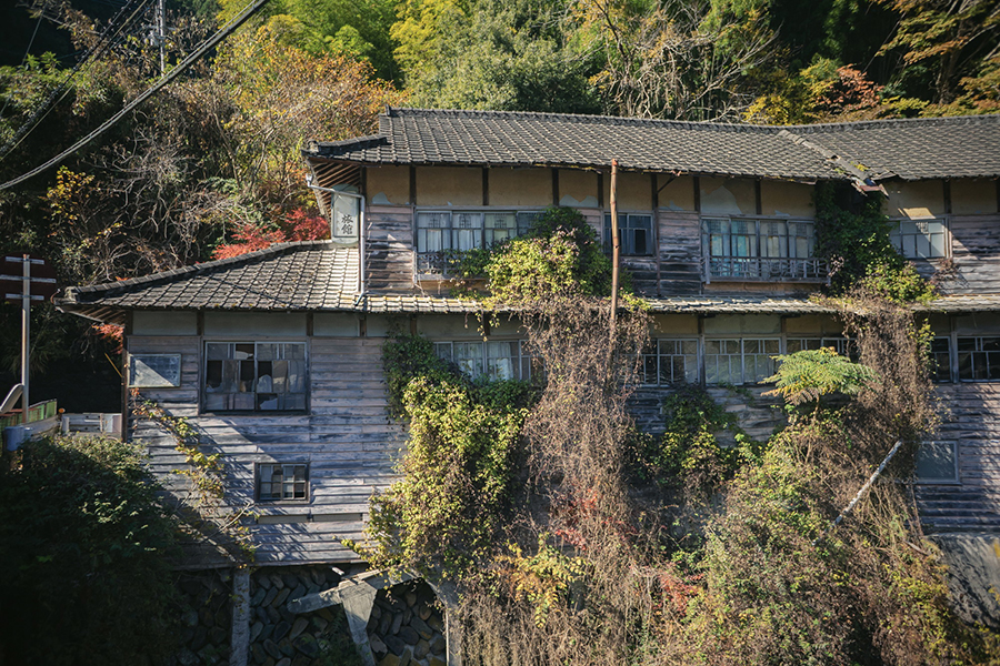 川の崖っぷちに建つ旅館