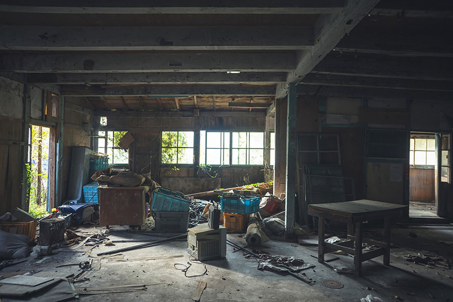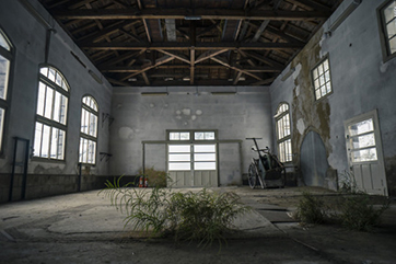 バイクが放置された工場