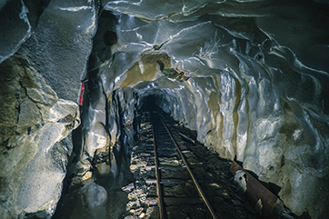 氷柱のできる坑道がある鉱山施設