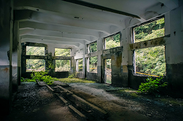 崩壊した選鉱所