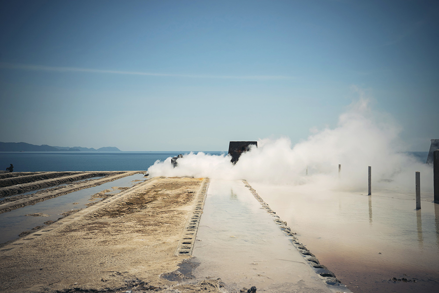 温泉地の製塩工場