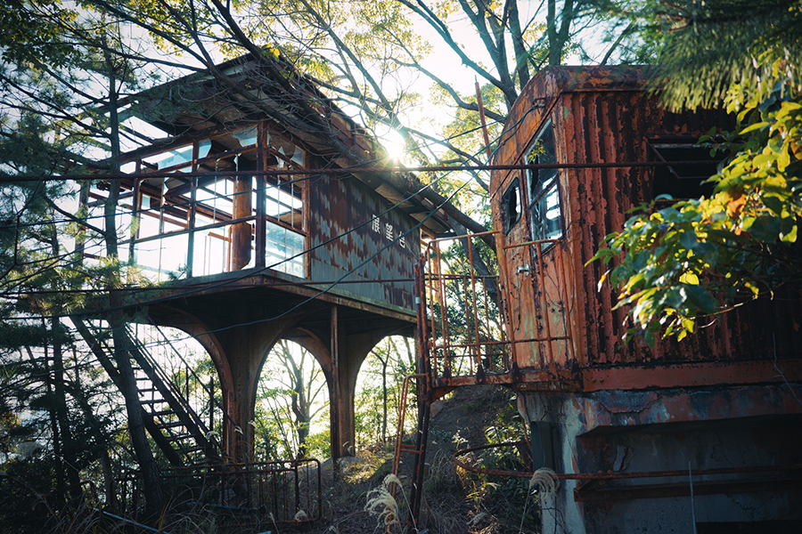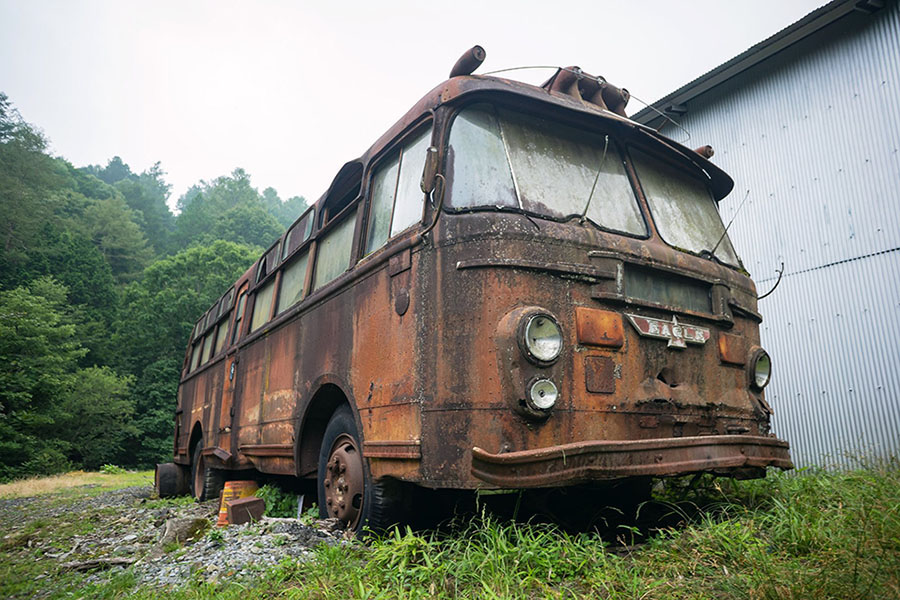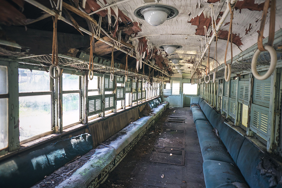 峠に放置された電車
