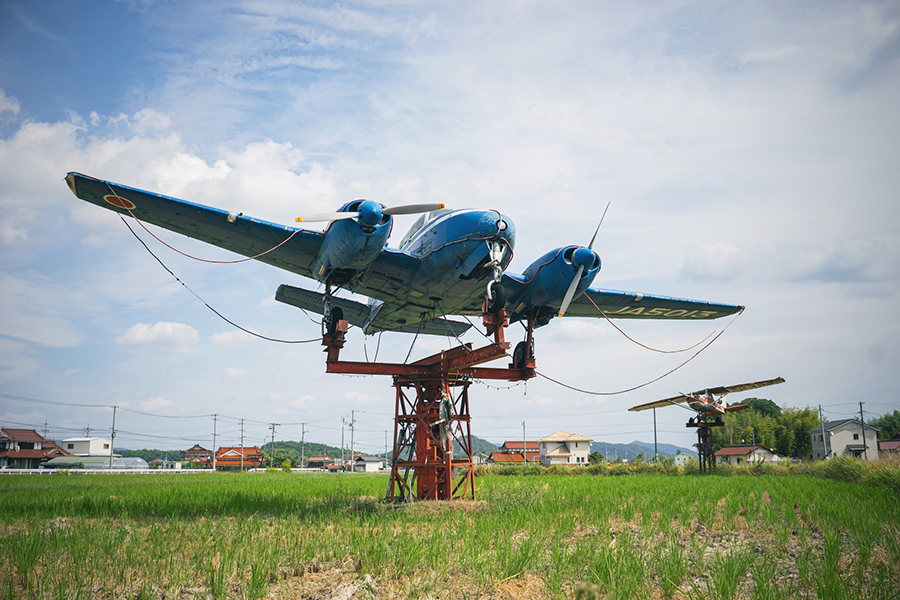 田んぼの中の飛行機